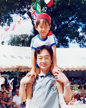 当院院長である父との幼稚園運動会での貴重なツーショット