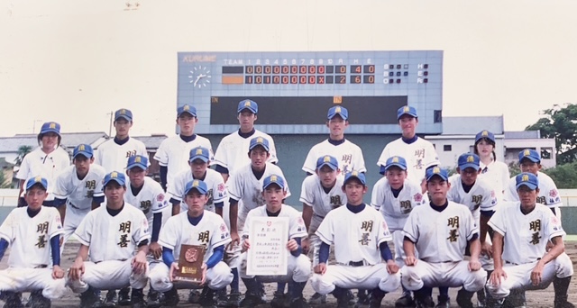 高校は地元の明善高等学校に進学し硬式野球部に所属。2年秋の筑後地区大会では決勝戦で強豪 大牟田高校に敗れ、惜しくも準優勝でした。